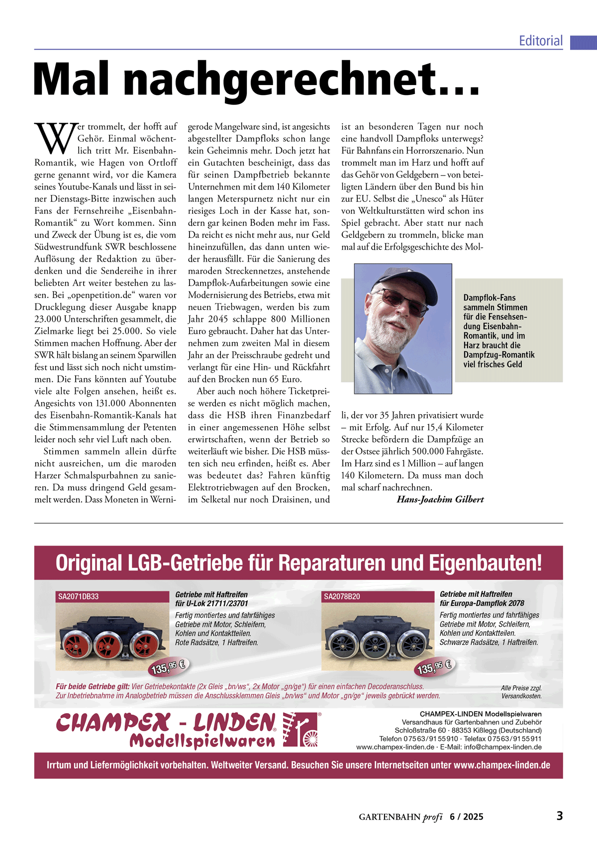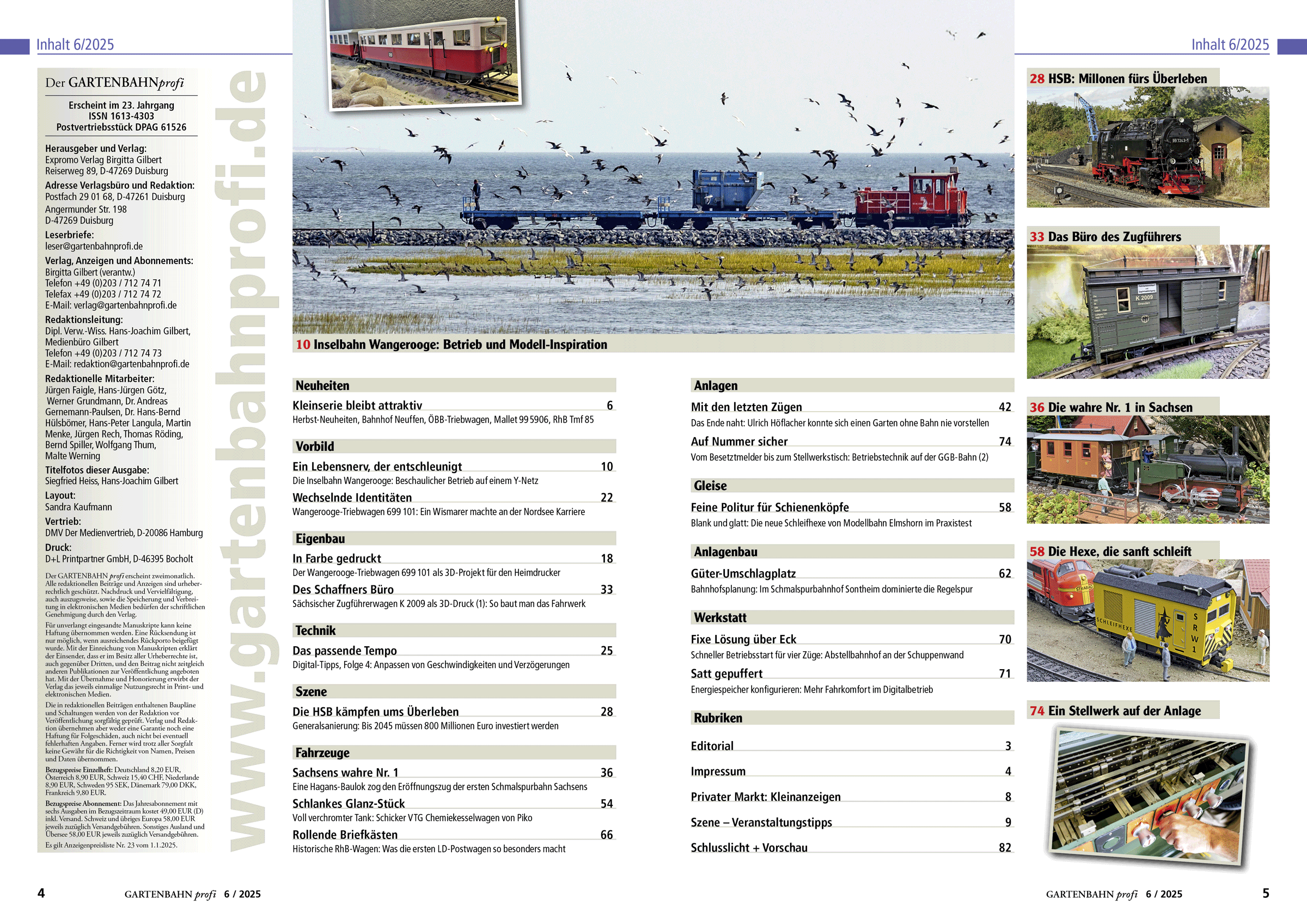 Gartenbahn Profi ist das Magazin von Modellbahnern für Modellbahner und lebt vom Mitmachen. Stammautoren geben hier ihr verlässliches Wissen. Aber auch Leser, die über praktische